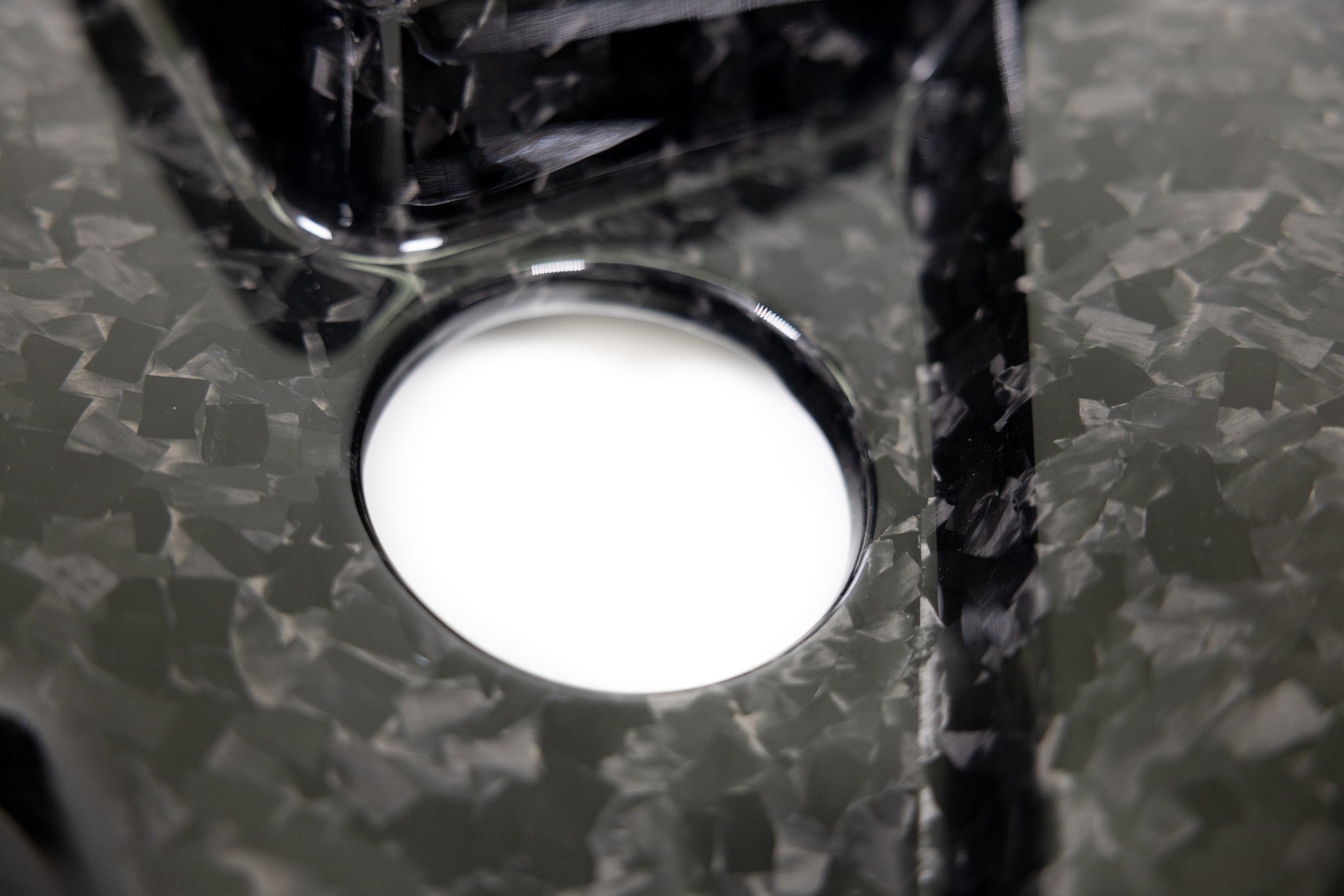 Also centrally located on the ARM G80 Carbon Fiber Engine Cover is the OEM placement for the oil fill cap.