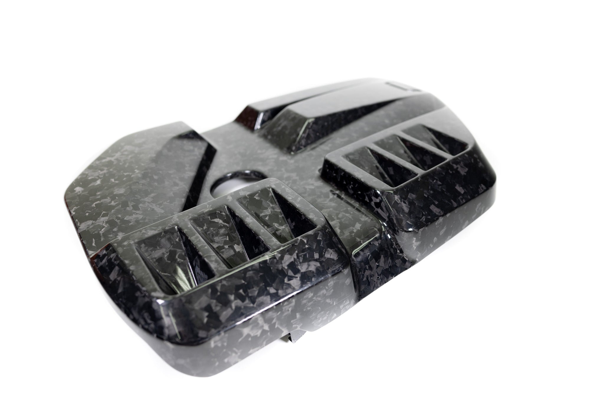 The ARM G80 Carbon Fiber Engine Cover is made of 100% dry carbon fiber,making it thinner, lighter, more precise, more symmetrical and more durable than wet carbon products. The ARM G80 Carbon Fiber Engine Cover is available in a 2x2 Weave or Forged carbon pattern. Each mounting point, which holds the OEM rubber grommet, is also made of carbon fiber. There is no resin used on this engine cover whatsoever.