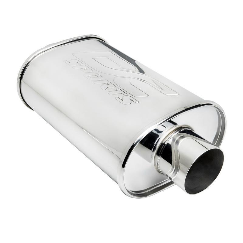 Our straight through, race inspired design ensures unrestricted exhaust flow leading to improved performance and a much deeper exhaust note. Eliminate your dull, quite OEM muffler and replace it with a DC Sports high gloss, polished, T-304 Performance Muffler. These are available in multiple sizes, inlets, outlets and orientations which make them easily adaptable to your custom project. Sports Oval Muffler 2.5" inlet, 2.5" outlet.