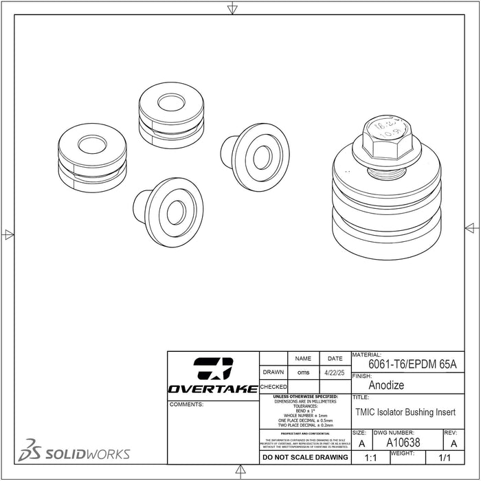 - 65A durometer EPDM bushing - Slightly stiffer than the factory bushing to secure your TMIC