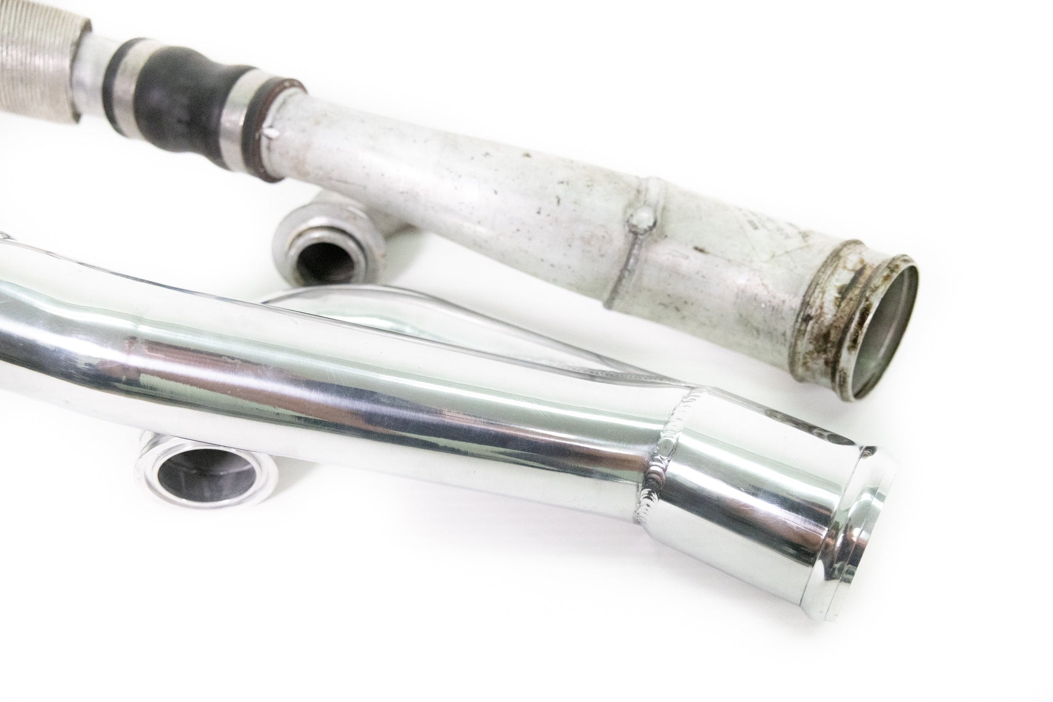 The ARM Motorsports N54 Turbo Outlets are comprised of T6061 aluminum for durability and long life. They incorporate an enlarged OEM-style CNC machined V-band connection at the turbo for an easy installation that will connect to any OEM-style or upgraded turbos using the 2" OEM connection.